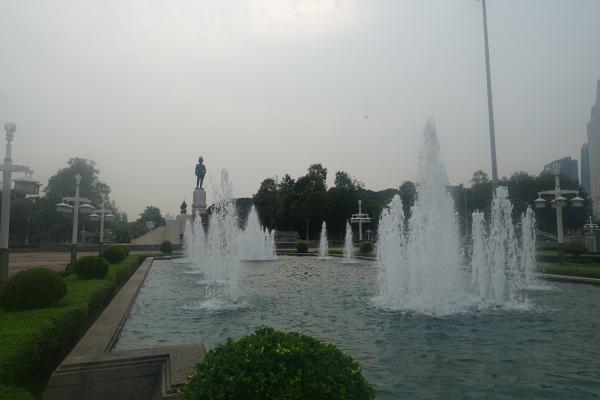 Lumpini Park close to central Bangkok. When you are near it you will easily be able to spot it (especially if you are approaching from the side with the memorial statue of King Rama VI (see photo below).