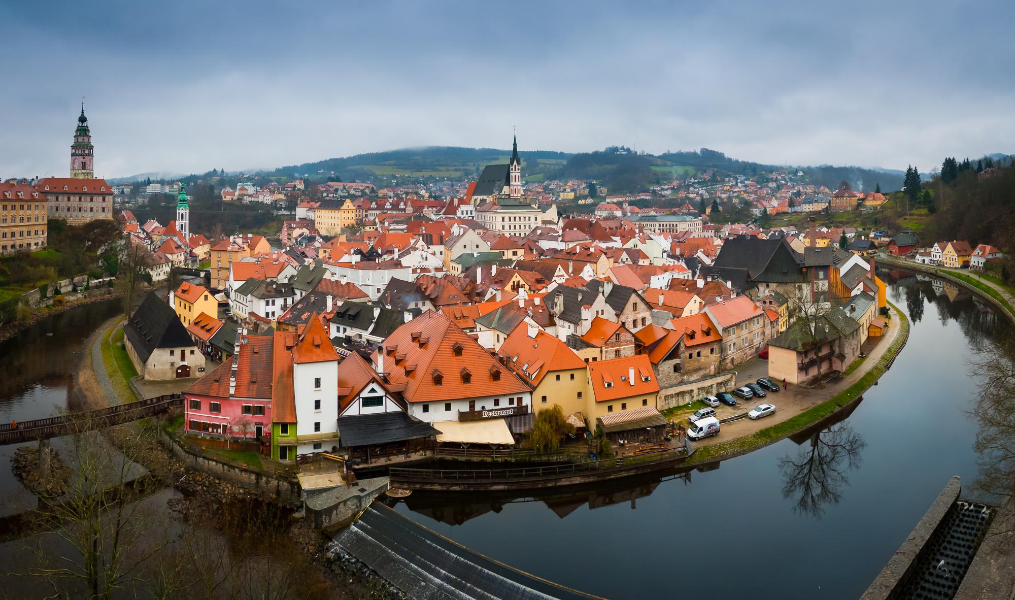 The city is surrounded by a meandering river (the same river as what is in Prague - the Vltava). It has lots of nice old buildings, and quite a few bars and restaurants.