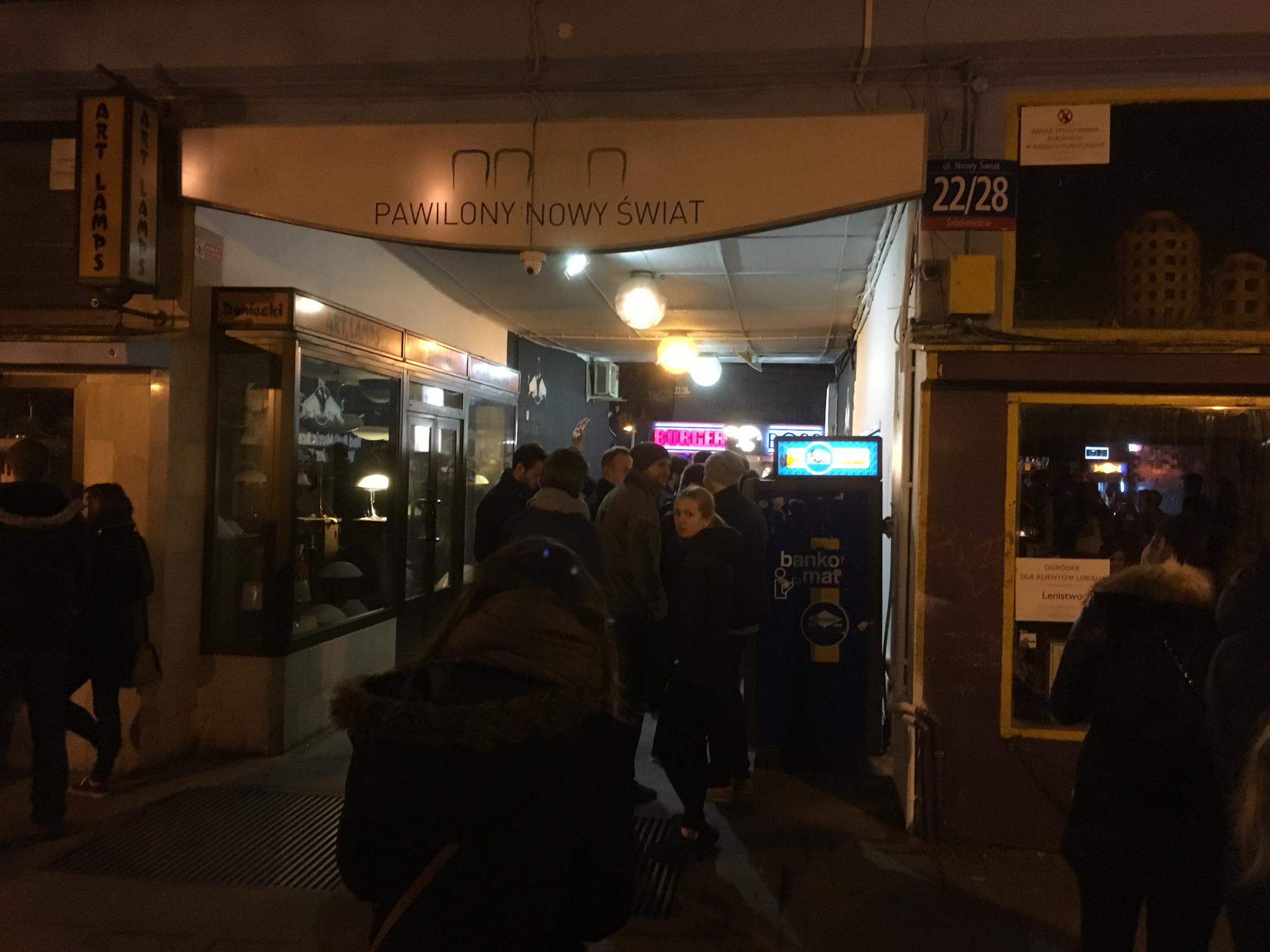 We started off in a Pijalnia bar on Nowy Swiat street. We had been many times to the Pijalnia bars in Kraków, and this one felt almost exactly the same. Cheap beer and shots (4zł) and super busy.